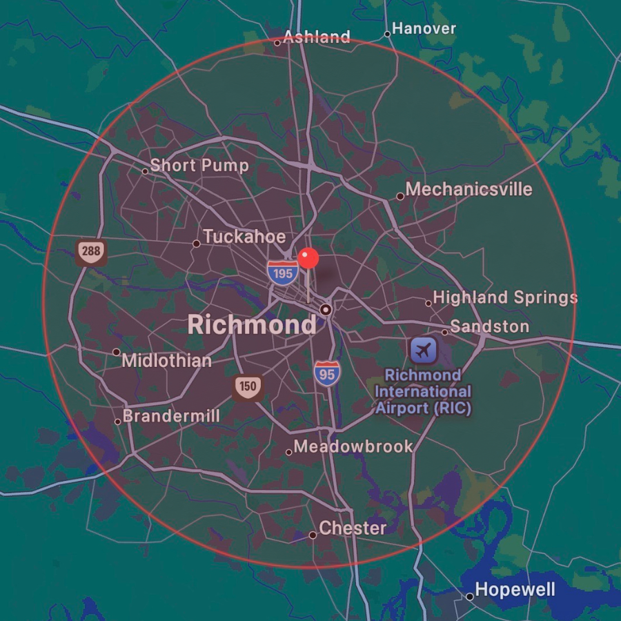 We deliver throughout Richmond and surrounding neighborhoods within a 15-mile radius.
